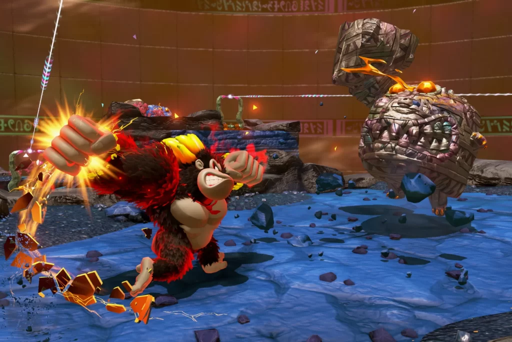 Sin embargo, la forma de pelear que tiene Donkey Kong junto a su compañera Pauline son maravillosas y de una creatividad absoluta, podremos romper prácticamente todo el escenario si quisiéramos, esto conlleva también a descubrir nuevos secretos, los puñetazos de DK varían y si está en su forma “Bananza” será prácticamente imparable.